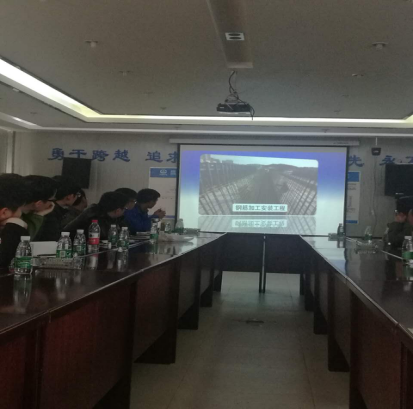 現(xiàn)場聽取介紹昌九快速路工程概況以及目前的施工技術特點、難點及進展情況;現(xiàn)場觀看了從泡沫混泥土施工工藝、大型橋梁的梁片、張拉、運輸、架梁等方面的效果視頻及深入細致的講解,工程的體量和技術難度讓人震撼。大家在認真觀看視頻后,不時地提出問題請教,項目總監(jiān)都一一進行了解答。