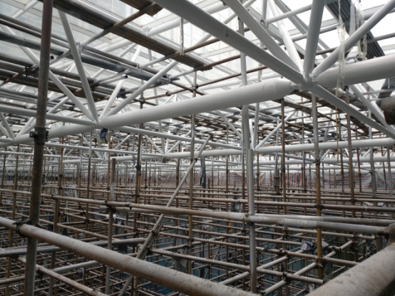 紅谷大廈中庭鋼桁架除銹以及底漆、防火漆施工等工作已于年前完成,剩余兩遍面漆的施工考慮到年后工作日施工,油漆味道較重,影響大樓辦公人員年后上班的工作環(huán)境,也已于2017年2月2日前(初五、初六兩天搶工)順利完成,并安排三臺大型抽風(fēng)機(jī)分散排風(fēng)換氣,確保了年后大樓內(nèi)的正常辦公環(huán)境。整個(gè)中庭腳手架的拆除工作預(yù)計(jì)2月底可基本完成。